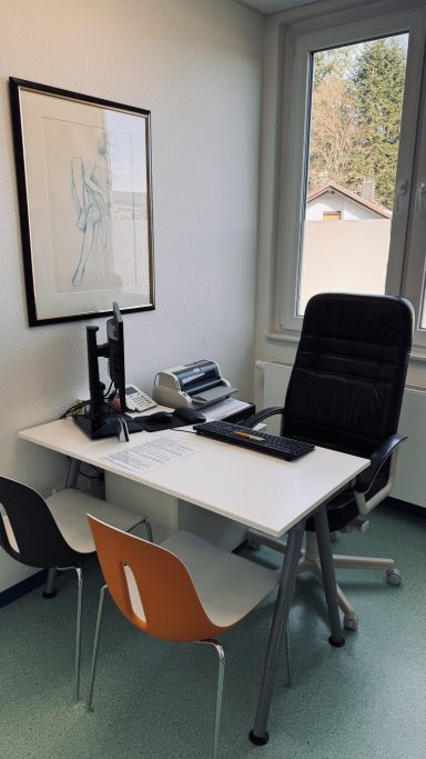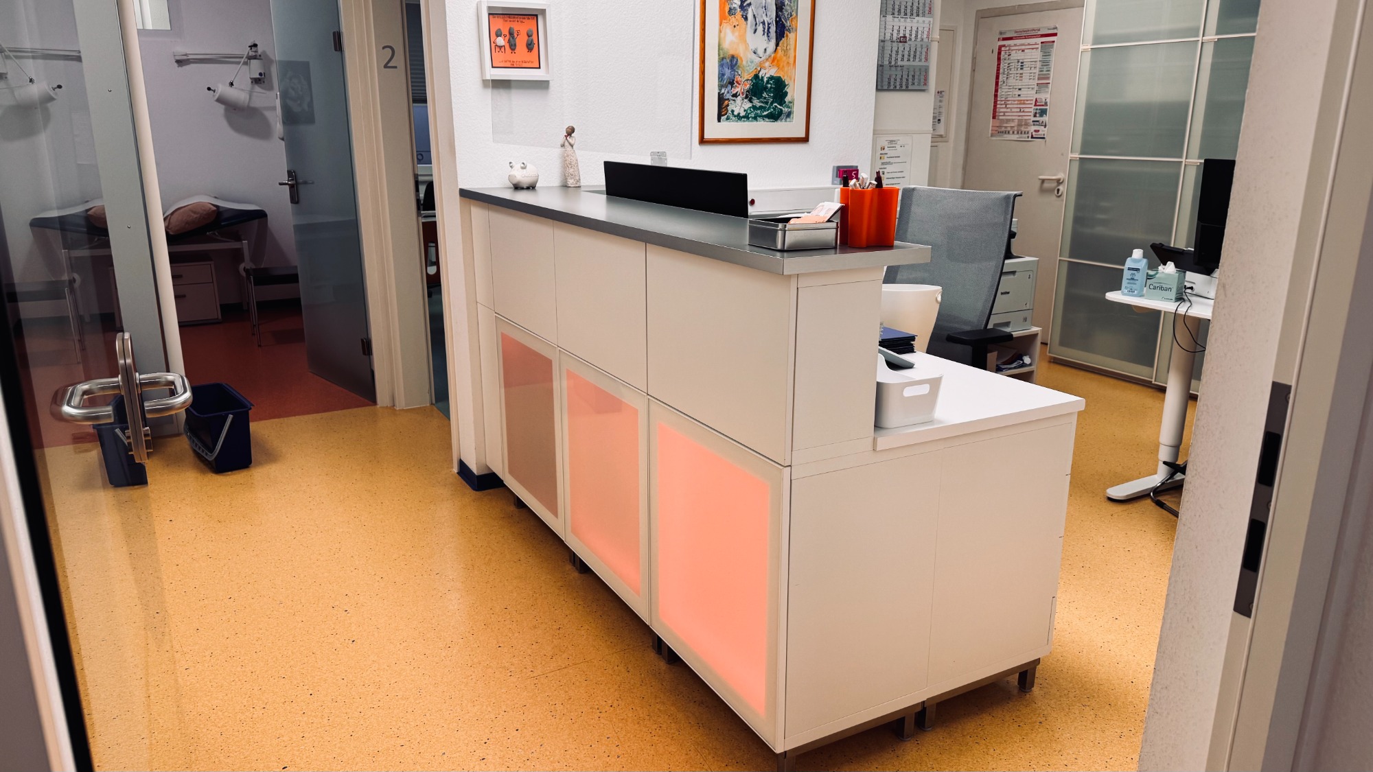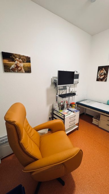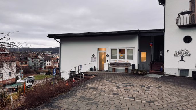 Ein Parkplatz für Gehbehinderte direkt vor der Praxis und ein Rollstuhl geeigneter Eingang ermöglichen einen guten Zugang.